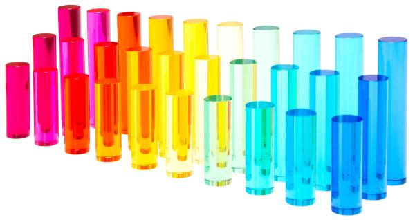 Regenbogen Zylinder Bausteine Acryl. Zum Bauen, Experimentieren und Spielen.