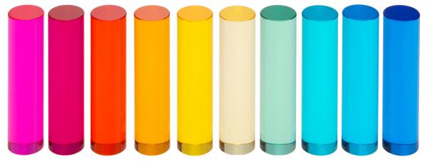 Regenbogen Zylinder Bausteine Acryl. Zum Bauen, Experimentieren und Spielen.