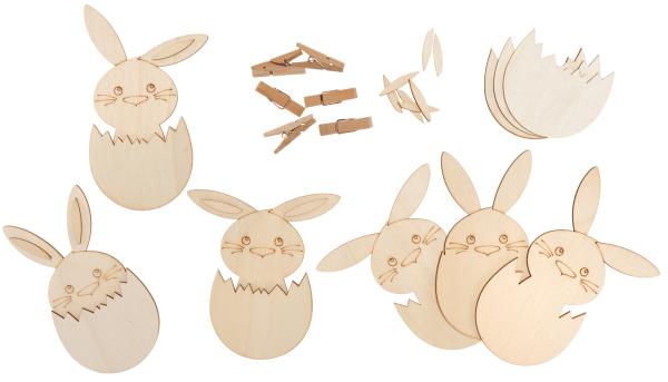 Bastelset Osterhase mit Holzklammer, 6er Set