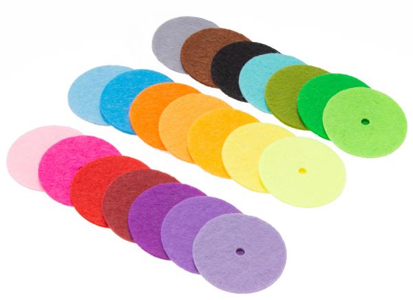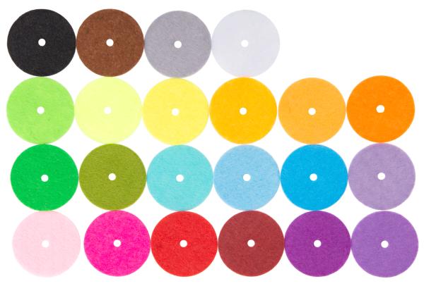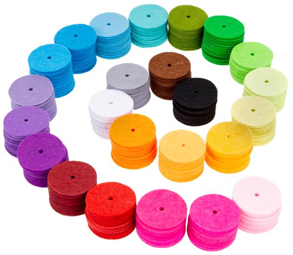- 288 Filzscheiben in 24 Farben (12 Scheiben je Farbe)