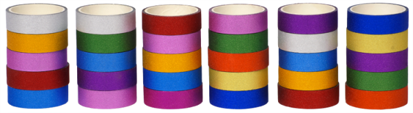 Set mit 5 Rollen Washi Tape in versch. Farben. Mit Glitzer je 1,5 cm breit 5 x 3 m lang.