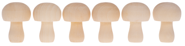 Inhalt: 6 Holz-Pilze zum Dekorieren, Bemalen und Gestalten.