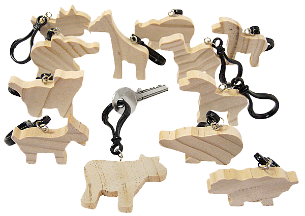 - 12 Holz-Schlüsselanhänger "Tiere"