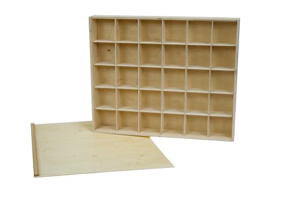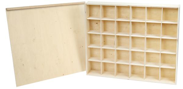 Stabile Holz-Box mit Deckel und 30 Fächern