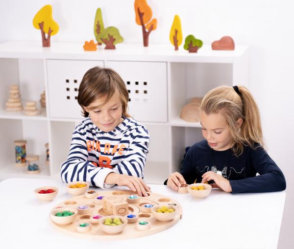 Sie können den Jahreszeitenkreis als Kreis oder als fortlaufende Bahn aufbauen. Er dient als Legebrett, Jahreskalender, Geburtstags- und Adventskalender. Die 24 Vertiefungen erstrahlen mit Lichtern oder Schmucksteinen. Die separate flache Holzschale passt genau in die Mitte des Kreises und kann z.b. mit Blüten, Nüssen, uvm. befüllt werden.