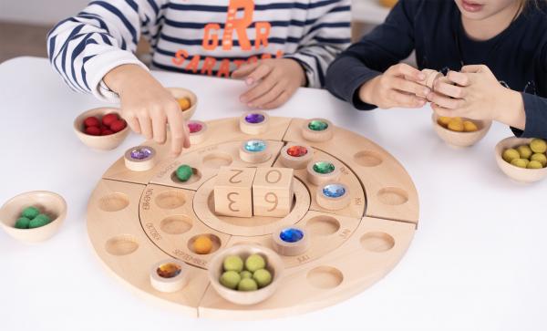 Dieser 11-teilige Jahreszeitenkreis aus hochwertiger massiver Buche ist ein wahrer Alleskönner. Die Ringe sind 4-geteilt und können beidseitig benutzt werden. Auf einer Seite finden sich Vertiefungen, die mit Teelichtern, Naturmaterialien, Glitzersteinen, Filzperlen und vielem mehr befüllt werden können. Die runden Aussparungen haben auch genau die richtige Größe, um Holzschalen für Sortierspiele (bitte separat bestellen, nicht im Set enthalten) aufzunehmen. Die mittleren Viertelkreise haben neben den Aussparungen eine Beschriftung für die Monate Januar bis Dezember. Die Aufteilung ist den Jahreszeiten angepasst, so dass Frühling, Sommer, Herbst und Winter ihren Platz finden.