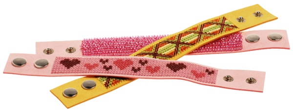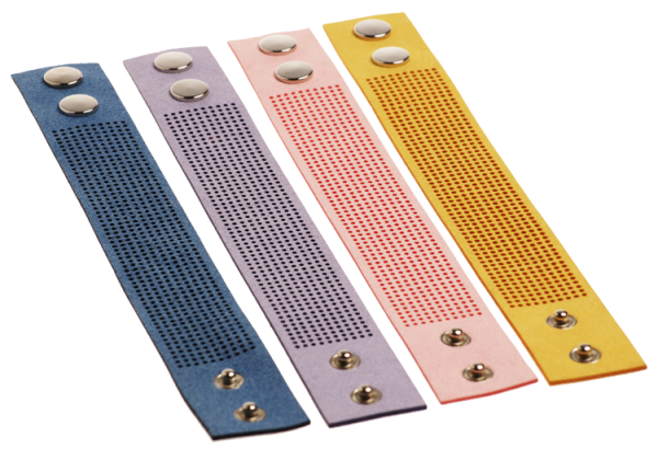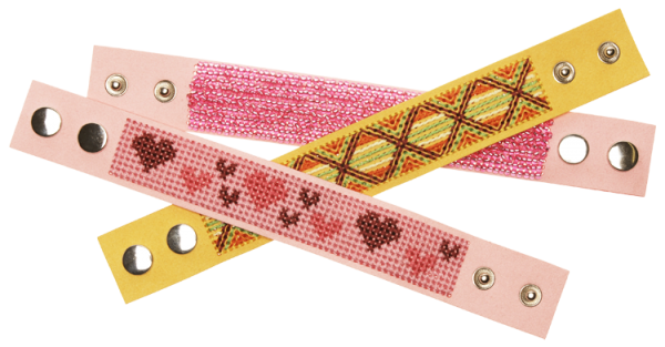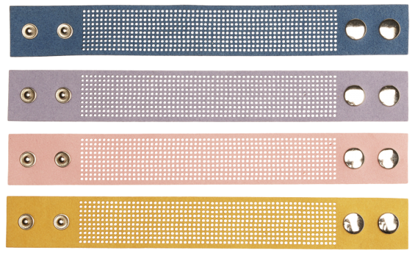 4 Kunstleder-Armbändchen mit Lochreihen können ganz individuell benäht uns bestickt werden. Duch das Auffädeln von Perlen oder Pailletten werden sie zu echten Hinguckern und zum tollen Geschenk. Eine kleine Anleitung zeigt dir erste Schritte. Die Armbändchen sind zweifach verstellbar.
