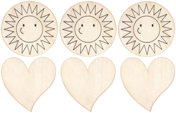 - 6 Holzmagnete zu Gestalten ( 3 x Herz + 3 x Sonne)