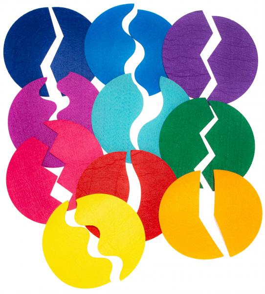 20 Filzteile, in 10 bunten Farben, mit Puzzlekante für 10 Zuordnugs-Kreise.