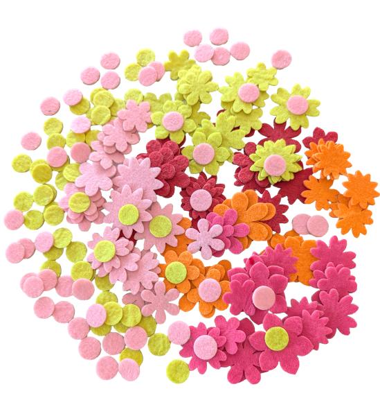 Inhalt:- 200tlg. 100 Blümchen in 3 Größen und 100 PunkteGröße:- Durchmesser Blümchen 25, 30 und 35 mmGewicht:- 20gMaterial:- Polyesterfilz, selbstklebend