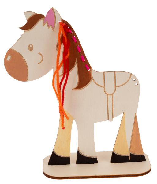 Einseitig mit Konturen. Mähne kann mit Wolle gestaltet werden. Löcher zum Flechten & Einknüpfen von Woll-Mähnen (Lieferung ohne Wolle oder Schnüre).