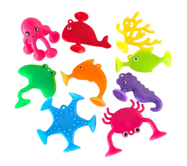 Inhalt:- 9tlg.Maße:- Größe z.B. Seestern Ø 6,5 cm, Seepferdchen 6,5 cm, Oktopus 5 cm. Größe Saugnapf Ø 2 cmGewicht:-75gMaterial:- Kunststoff