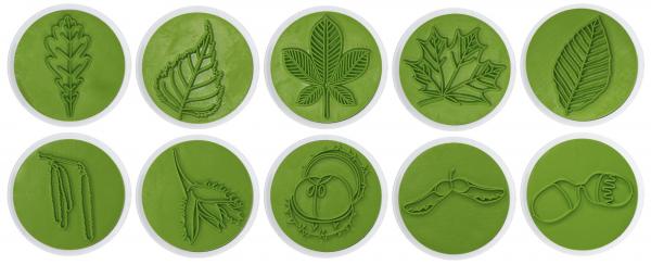 Die extra große Stempeln sind ideal für Kindergarten und Grundschule. Enthalten sind 5 Blätterstempel der bekanntesten Laubbäume. Eiche, Kastanie, Buche, Ahorn und Birke sowie 5 Stempel mit den dazu passenden Früchten oder Nüssen.
